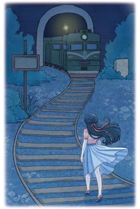 列车在黑夜的旷野中飞驰,那无尽的黑呀,像吞噬人的黑洞,让人真是恐惧又悲伤。