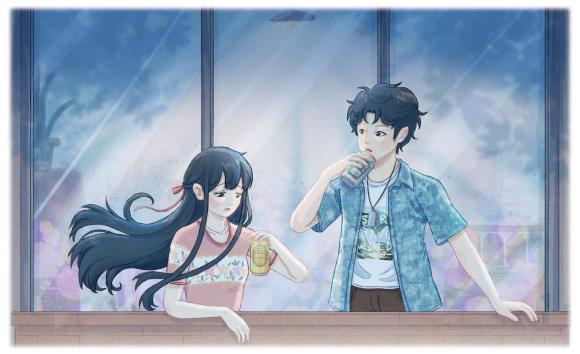 三味子不太好意思地对米乌说:“我以前把另一个人当成你了。现在看到真人才知道搞混了。”