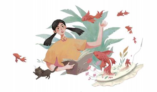 绣女针尖上的血滴顺着红丝线,滴入了锦鲤鱼尾,瞬间燃起了一小团炽热,小锦鲤鲜红得像火,它着了魔法似的扑腾着水面,池塘泛起层层叠叠的细浪……