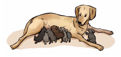 小新具有拉布拉多犬极其温和的性格,温和到几乎不发出吠叫,是永远沉默着、悄悄生活着的一只可爱的小狗。等到小新当了妈妈,它一口气生了八只小拉布拉多犬,八只里面有七只都是纯黑色的毛,像煤炭一样黑,和它们父亲的颜色一样,只有一只是咖啡色的小狗,这只狗我留了下来,取名大咖。