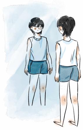 但在我们乡下,夏天只有男孩子才光膀子、穿短裤,女孩子总是用长衣长裤把脸、手、脚以外的每一寸皮肤都捂得严严实实。我一下子慌了,抱紧双臂,像只受惊的小鹿。