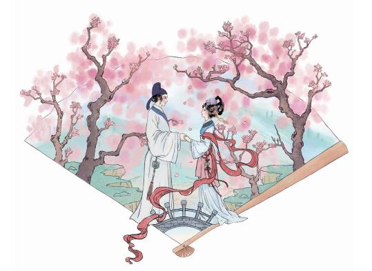 【园林好】(末)正芬芳桃香李香,都题在宫纱扇上。怕遇着狂风吹荡,须紧紧袖中藏,须紧紧袖中藏。