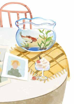 以前,爸爸教我分辨鲤鱼和鲫鱼,虽然它们外形差不多,但鲤鱼的嘴旁有两根小须,还有它的鳍上有一部分是红色的,这种在河里野生的鲤鱼与公园里那种全身通红的鲤鱼并不一样,它的生存能力更强。小时候看过《小鲤鱼历险记》,很喜欢里面的小鲤鱼泡泡,我舍不得把它吃掉,便把它放进鱼缸里养了起来,也叫它泡泡,每天上学出门前,我总会顺便把鱼食投入缸中。有一次,我投了一整包鱼食,结果放学回来时发现四条小金鱼都胀死了,后来就只剩下这条野生的小鲤鱼了。我一直要爸爸还去买几条鱼回来,但他总是很忙,一直没得空。泡泡并不会说话,它只是在鱼缸里漫无目的地游着,连个伴也没有。我也是如此,一个人孤单地坐着,越发显得冷清、孤独,让我这颗恐惧的心越发恐惧。